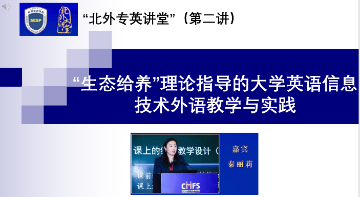 为认真落实《大学英语教学指南》要求,进一步提升教师信息素养,12月17日,PA集团官网pa集团官网入口“专英讲堂”举办题为《“生态给养”理论指导的大学英语信息技术外语教学与实践》的线上讲座。讲座特邀辽宁省“百千万人才工程”千层次人才、大连外国语大学教授、应用语言学方向带头人秦丽莉主讲。来自北外、大连外国语大学等国内多所大学的150多位老师参加了讲座。讲座由北外pa集团官网入口院长侯俊霞主持。