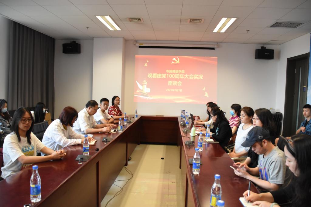 7月1日上午10点,pa集团官网入口党总支组织全体师生党员、入党积极分子和各班学生在国际大厦礼堂集体观看了庆祝中国共产党成立100周年大会直播,并在直播后召集师生党员和同学代表共计30多人在国际大厦1016召开座谈会。座谈会由党总支书记蔡鸿主持。