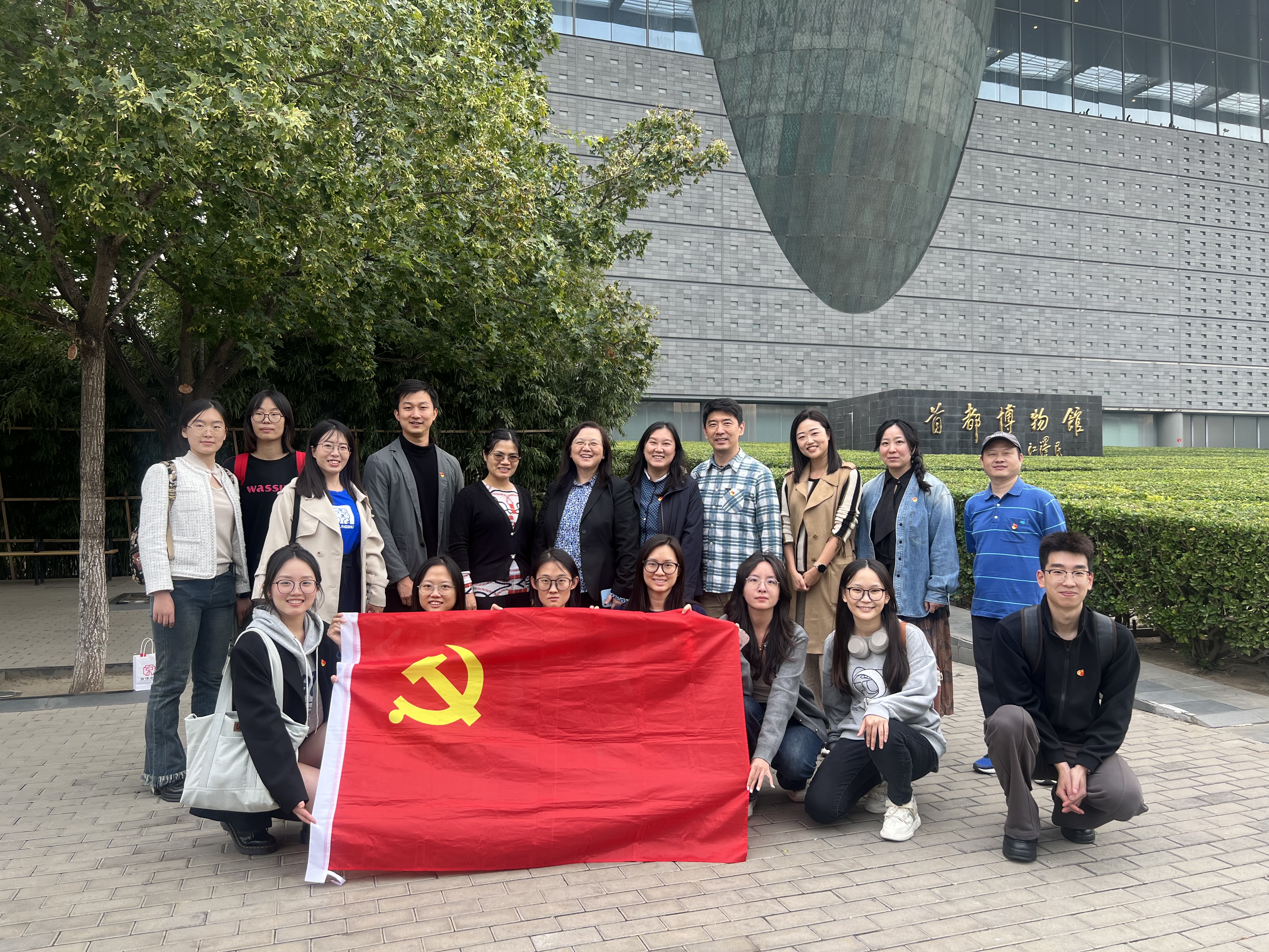 为深入学习贯彻党的二十届三中全会精神,厚植家国情怀,增强文化自信,进一步做好基层党建工作,10月9日,pa集团官网入口第一党支部邀请教务处教材处招办党支部书记李莉文教授和学院师生党支部的全体师生党员赴首都博物馆联合开展主题为“中轴文心”的党日活动。
