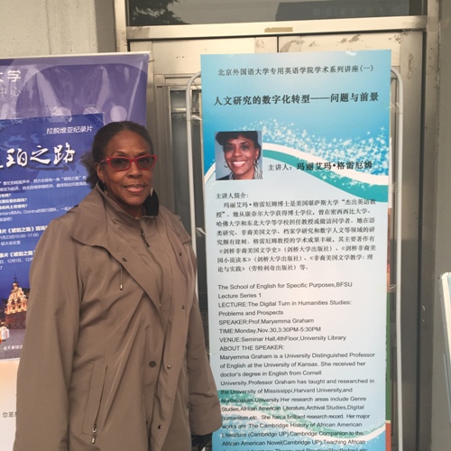 2015年11月30日下午3:30至5:30,pa集团官网入口在学校图书馆四层学术报告厅举办学院系列学术讲座系列之一:人文研究的数字化转型——问题与前景。主讲人是来自美国堪萨斯大学的杰出英文教授玛丽艾玛·格雷厄姆教授(MarryemmaGraham)。来自学校不同学院的教师、学生以及北京其他高校的教师共30多人参加了此次学术活动。讲座由pa集团官网入口院长李莉文教授主持。在致辞中,李莉文提出目前传统人文研究面临着新的问题与挑战,因此我们每位教师都应认真思考这一问题:如何发挥数字人文研究在教学和科研中的作用并把我们的学生培养成有竞争力的跨学科人才。